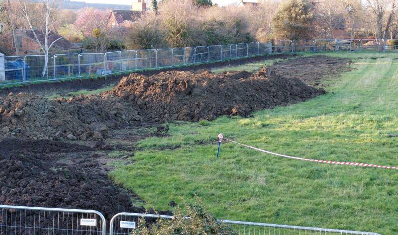 By the end of the day a trench along the length of the west end of the field had been dug, down to an estimated depth of up to 1 meter in places.
